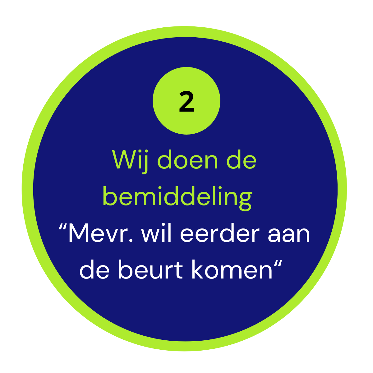 Wij zoeken voor u: We benaderen zowel uw huidige als nieuwe zorgverleners voor als het eerder kan.